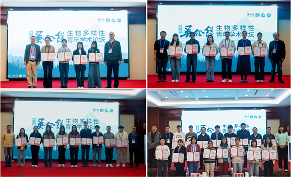 墙报路演 经过激烈角逐,最终分别评选出了博士研究生组、硕士研究生组与墙报组的一、二、三等奖和优秀奖。中国科学院昆明植物研究所博士研究生杨茂、硕士研究生钟婷芳分别获得博士组、硕士组一等奖;中国科学院西双版纳热带植物园博士研究生李瑶珂和中国科学院昆明植物研究所博士研究生陈璇分别获得墙报路演组一等奖。 在颁奖仪式上,吴建强副所长作了总结发言,并希望未来吴征镒生物多样性青年学术论坛继续扩大影响力,为全国青年学子搭建更高水平的展现自我、学习交流的平台。最后,颁奖嘉宾分别为获奖学生颁发荣誉证书,论坛在欢乐的合影中落下帷幕。